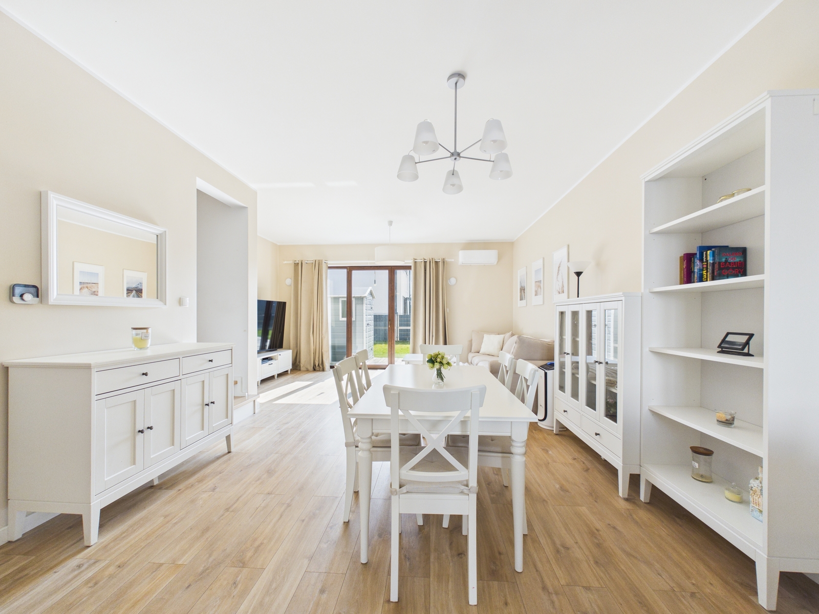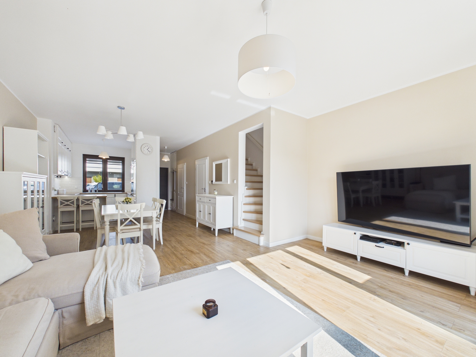 Oferuję na sprzedaż elegancki dom w zabudowie szeregowej z ogrodem, położony w spokojnej okolicy z szybkim dojazdem do Wrocławia. Nieruchomość gotowa do zamieszkania, bez dodatkowych nakładów. To doskonała propozycja dla rodzin oraz osób ceniących sobie bliskość natury i wygodę codziennego życia.