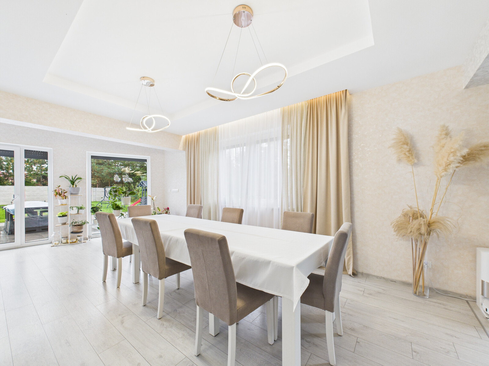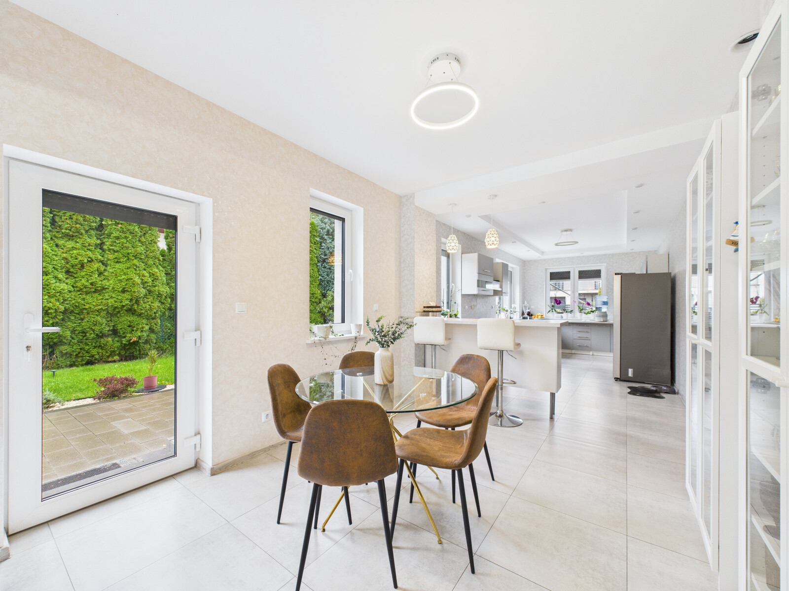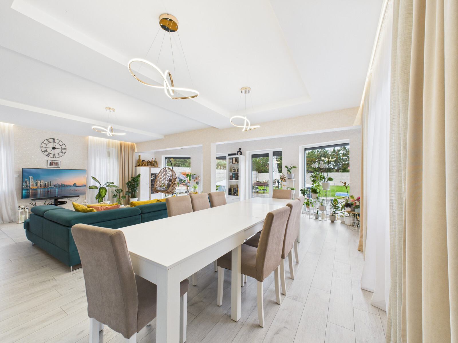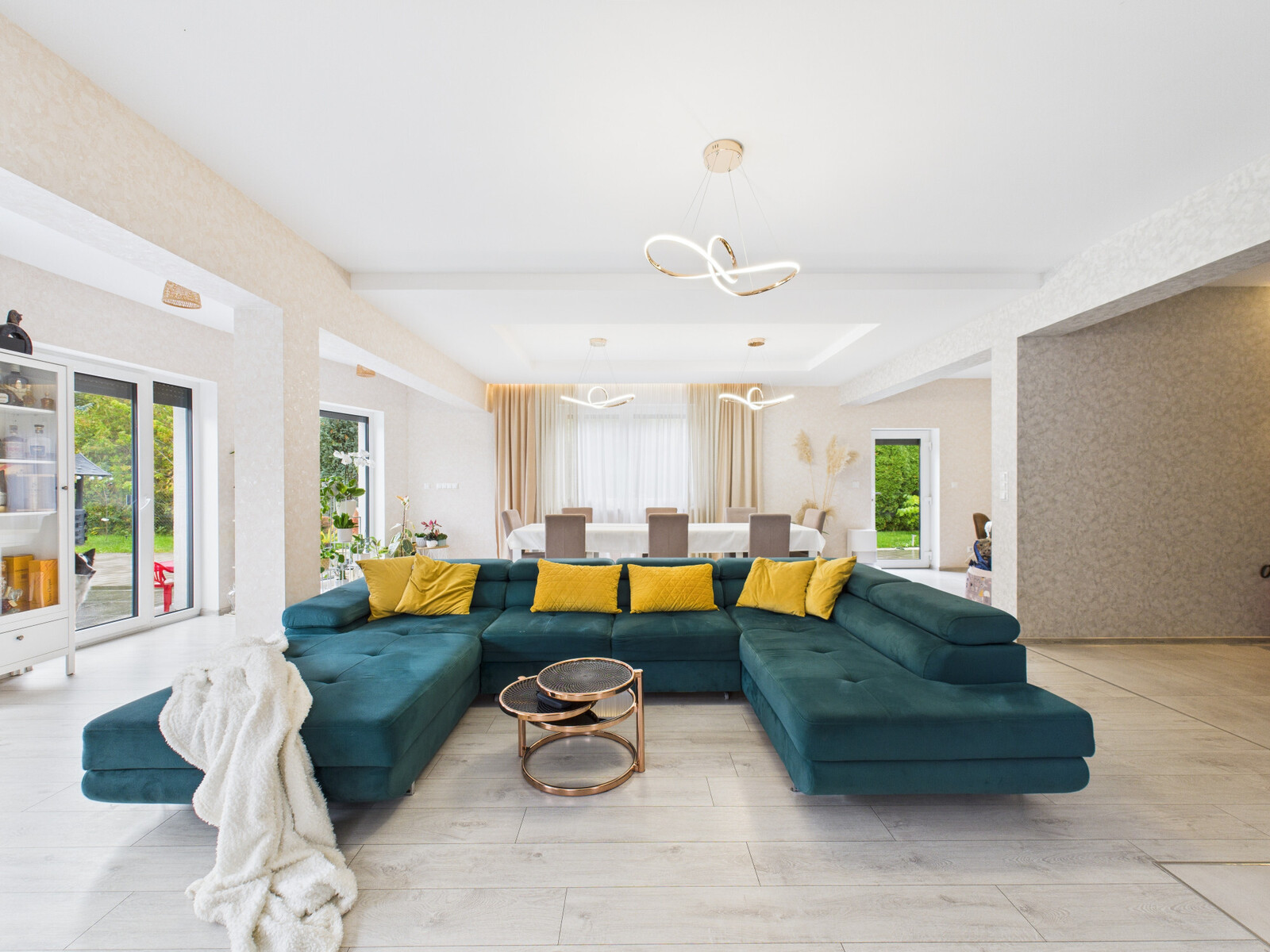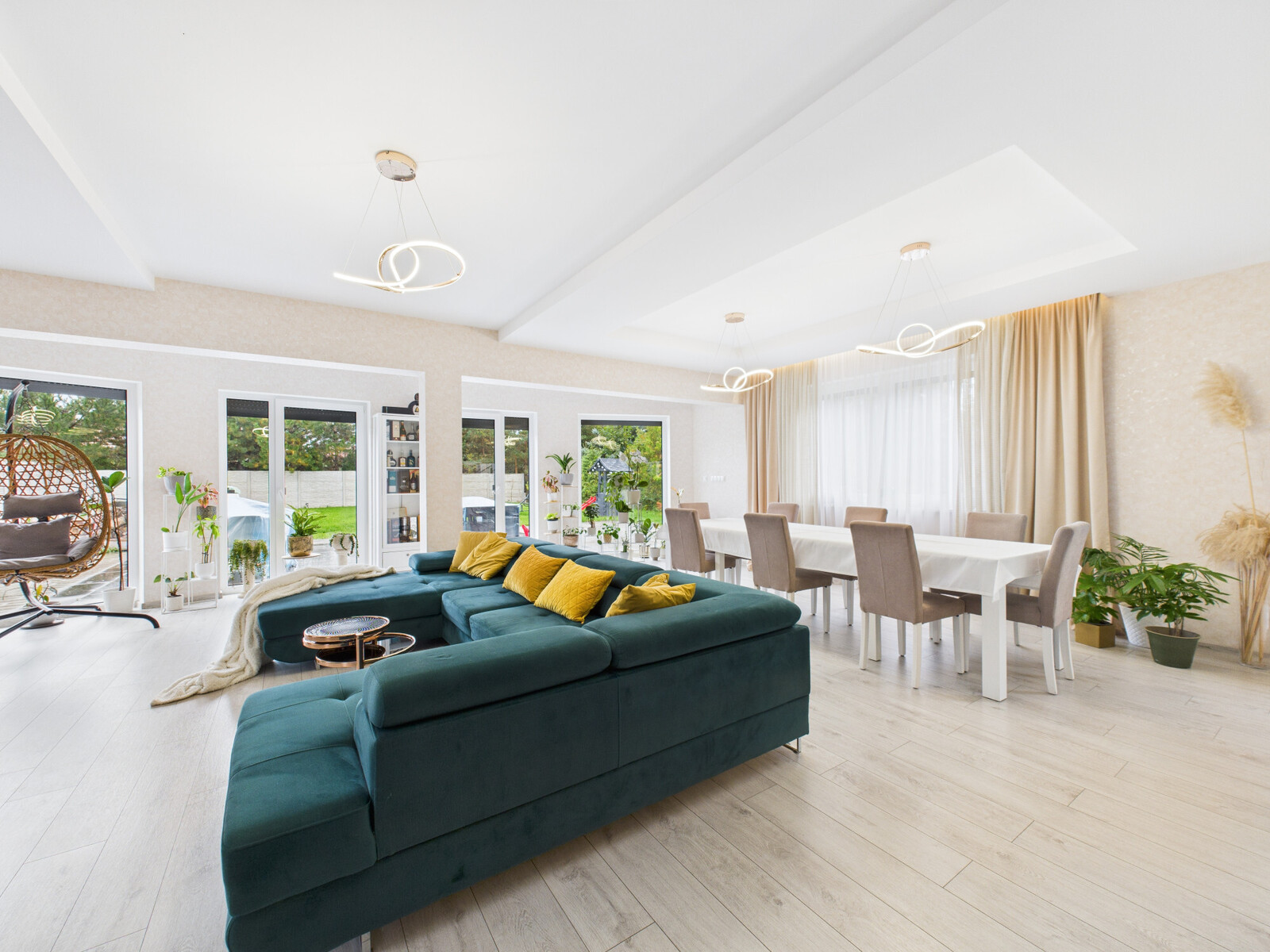 – Salon z jadalnią i kuchnią – ok. 60 m², jasny i otwarty, z wyjściem na taras