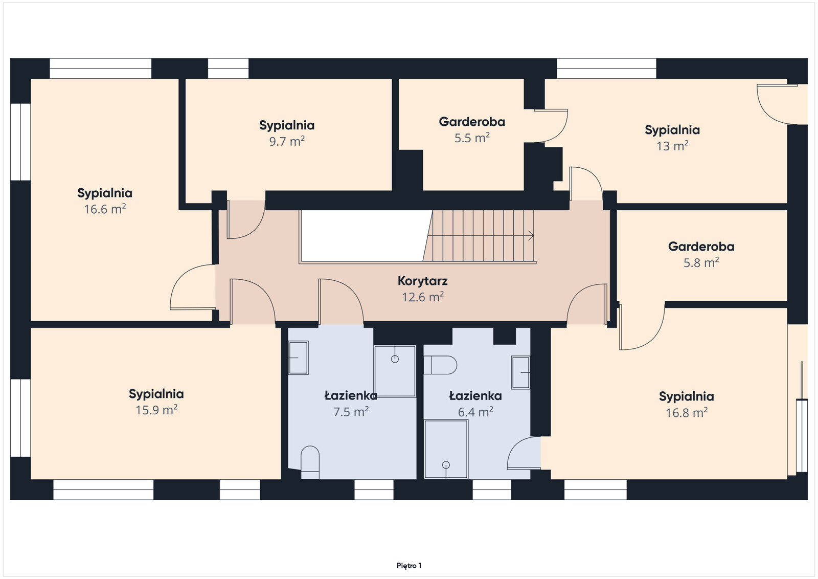 – 5 niezależnych pokoi (od 8 do 16,5 m²)