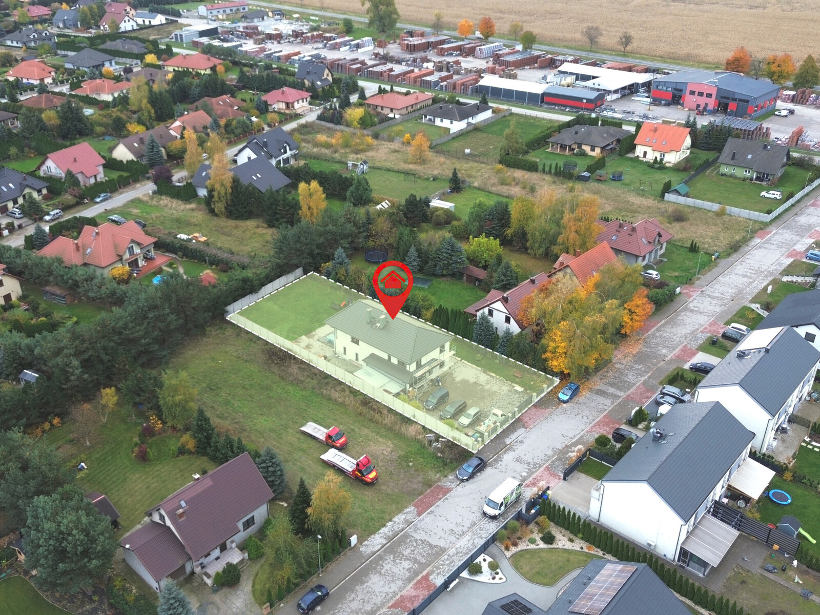 Dom położony w cichej, kameralnej okolicy z niską zabudową i dużą ilością terenów zielonych.