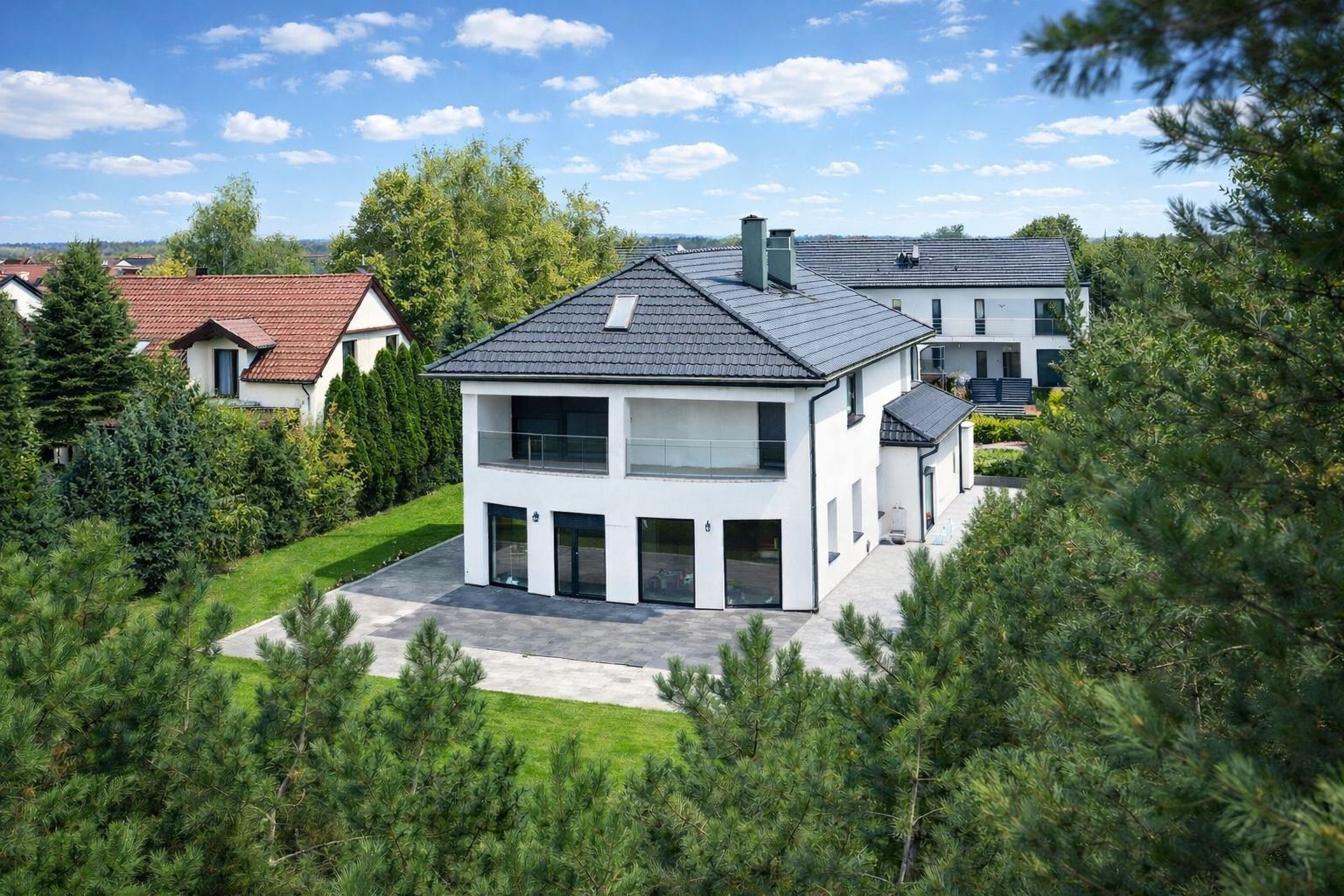 – Duży garaż + podjazd z kostki (miejsce nawet na 5 samochodów).