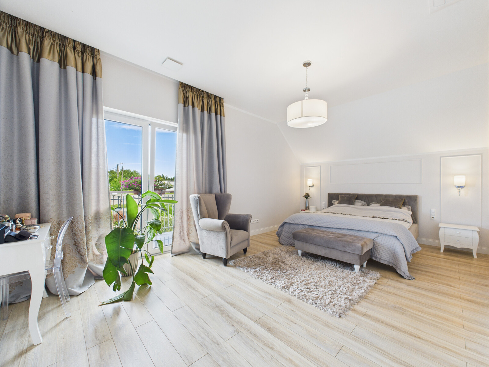 6 przestronnych pokoi – funkcjonalny układ pomieszczeń z wysokimi sufitami (3 m), klimatyzacja w każdym pomieszczeniu.