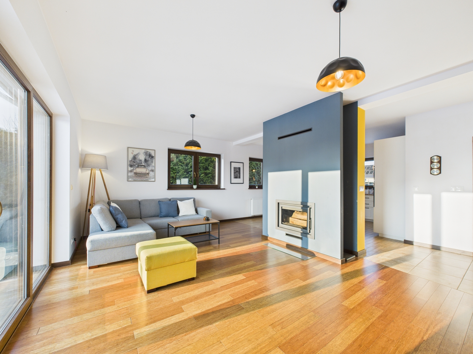 – jasny, przestronny salon z aneksem kuchennym oraz bezpośrednim wyjściem na taras,
