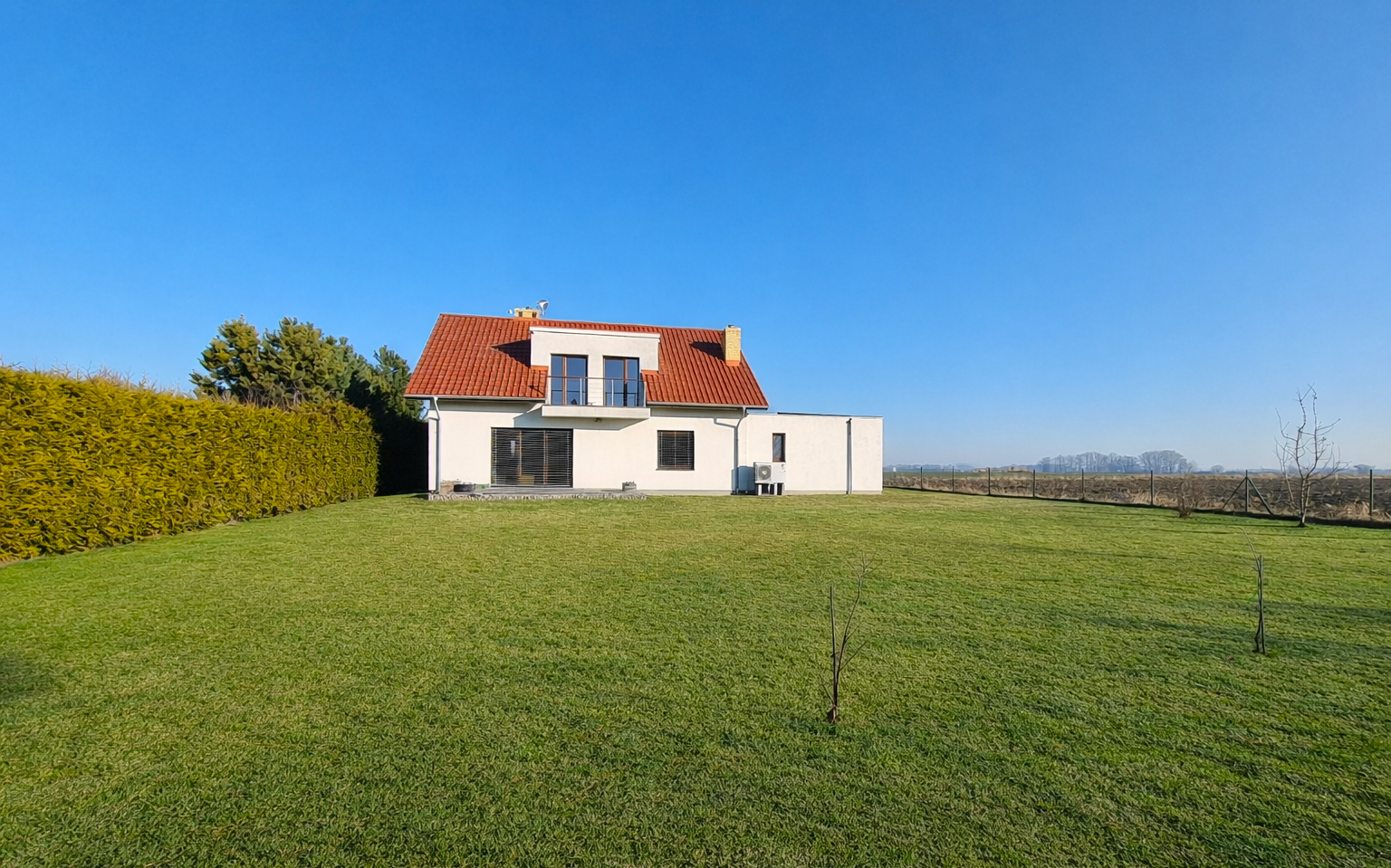 Nieruchomość położona jest na dużej, pięknie usytuowanej działce z otwartym widokiem, w ostatniej linii zabudowy jednorodzinnej, z poczuciem przestrzeni i prywatności.