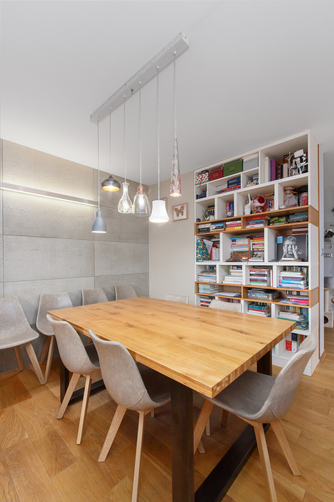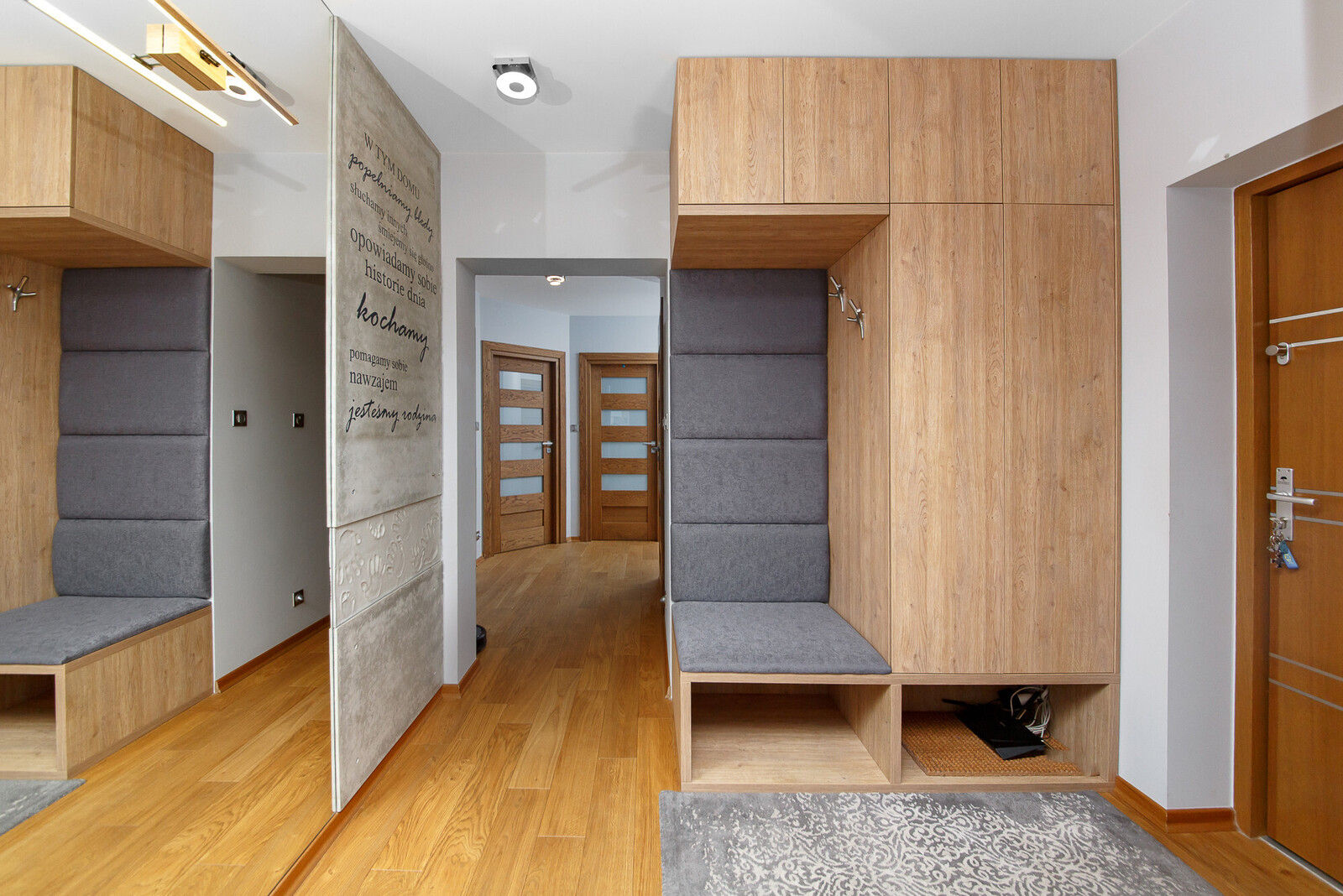 – Przedpokój – z szafami w zabudowie, estetycznie łączący wszystkie części mieszkania,